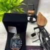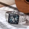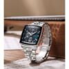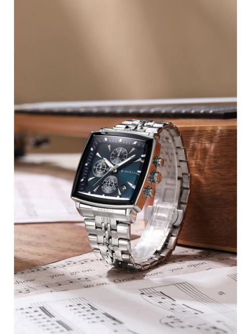 Stainless steel silver body, 40mm Blue Square